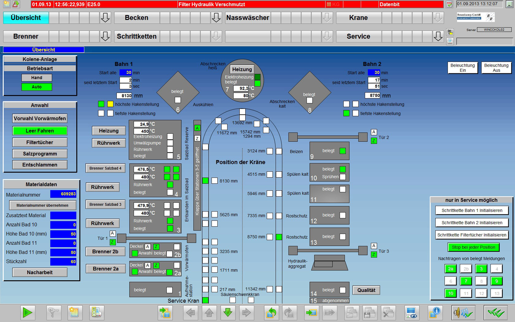 Dabei werden diese in Körben mit Hilfe einer Krananlage für festgelegte Zeitabschnitte nacheinander in entsprechende, chemische Substanzen eingetaucht, die zum Teil bis auf 480°C zu erhitzen sind.